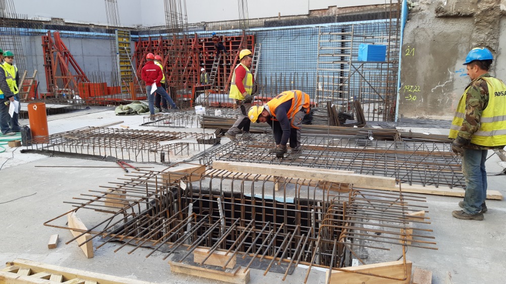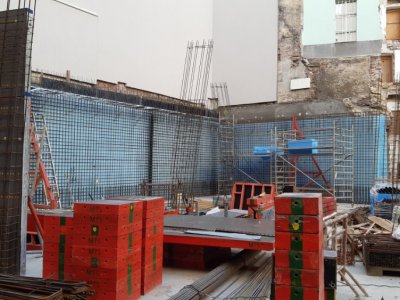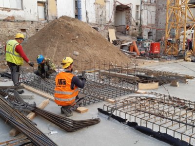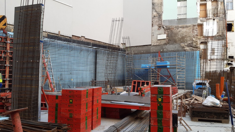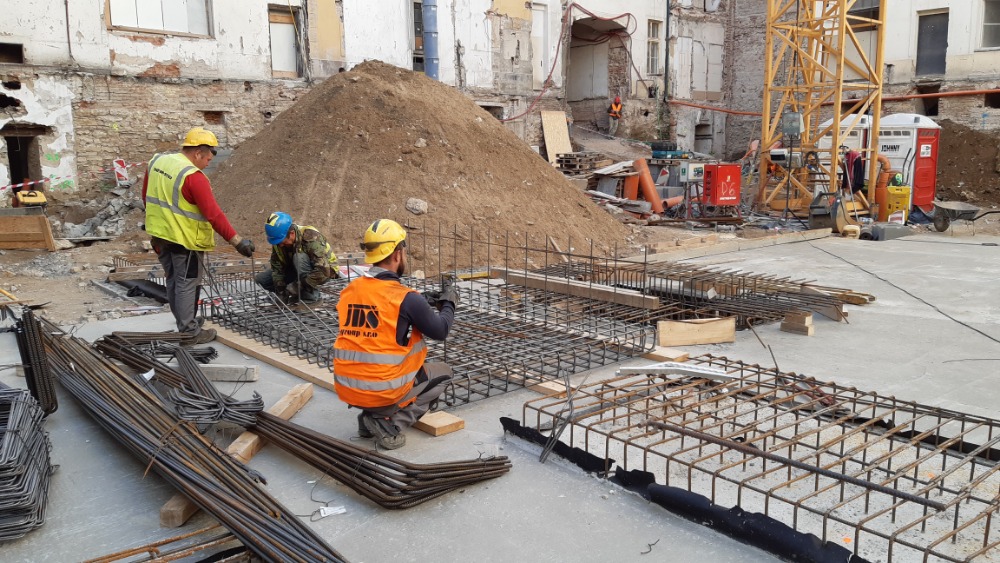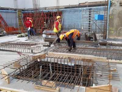 Probíhá betonáž železobetonové základové desky, dojezdů výtahů a svislých konstrukcí 1.PP.